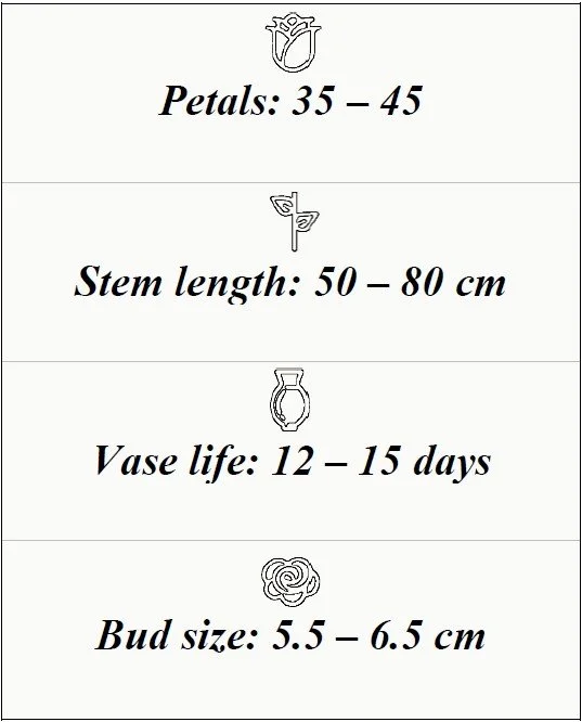 We present one of our most exclusive rose varieties, created with imagination and a passion for beauty. This production combines innovation and elegance, offering unique colors and shapes that captivate the most demanding clients. Each rose is the result of dedication and excellence, guaranteeing freshness, quality, and a truly different experience. Perfect for those seeking to stand out with luxury arrangements and unforgettable details, this variety represents the living art of nature at its finest.